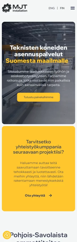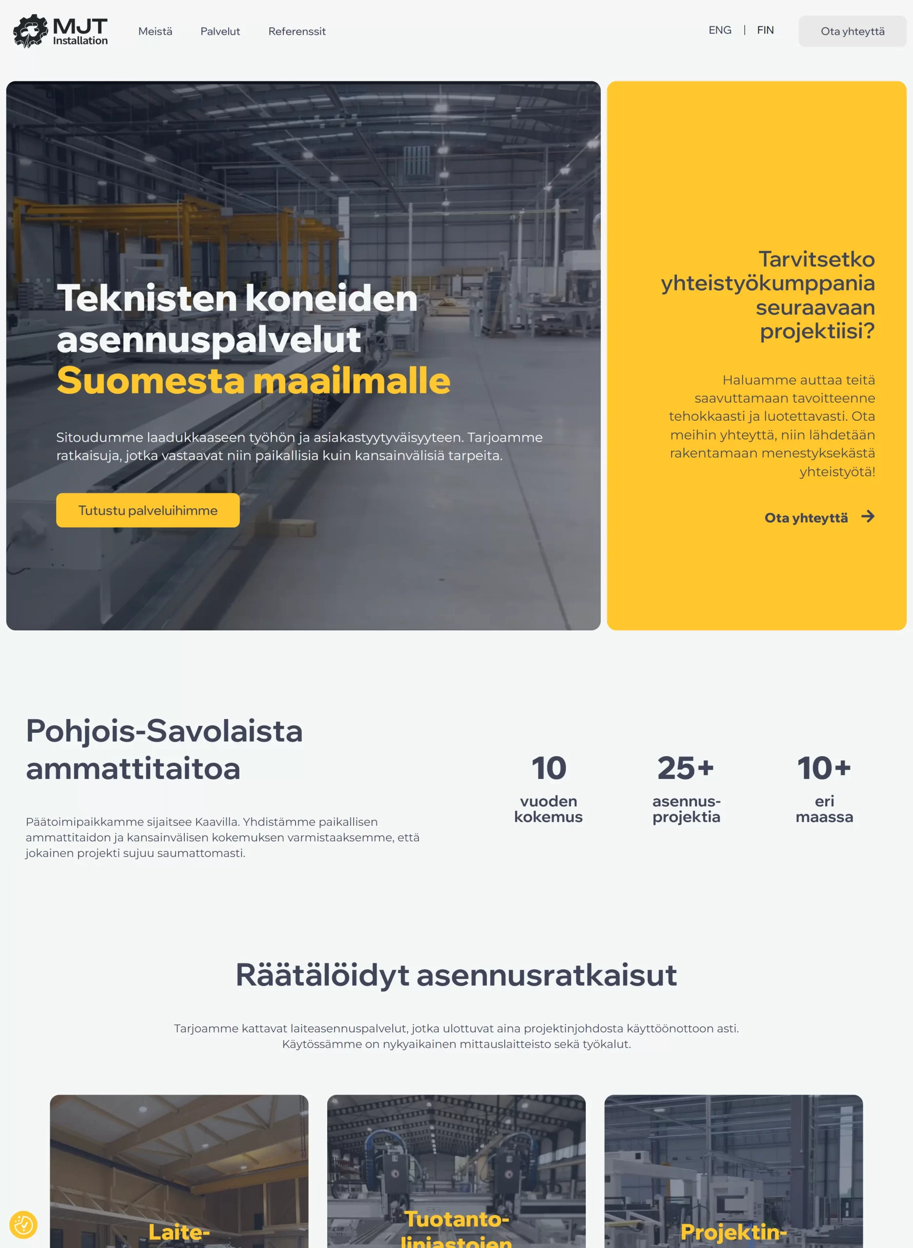 MJT Installation on kaavilainen yritys, joka tarjoaa teknisten koneiden asennuspalveluita ympäri maailmaa. He tarvitsivat selkeän nettisivuston sekä brändi-ilmeen.